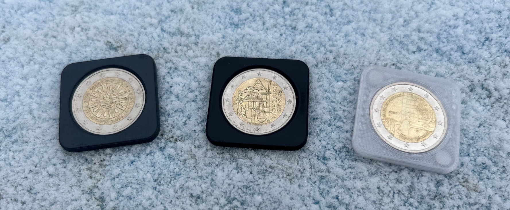 EuroMag (2 €) je malý, no premyslene navrhnutý 3D držiak, ktorý premení vašu 2 € mincu na magnetickú dekoráciu alebo originálny zberateľský kúsok.